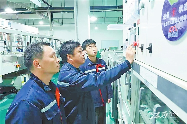 在上栗工业园鑫睿电子科技有限公司,库区移民陈斌正熟练操作精密仪器。去年7月,他通过“5+2就业之家”平台的送岗服务,不到一周就找到了这份工作。
